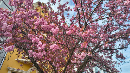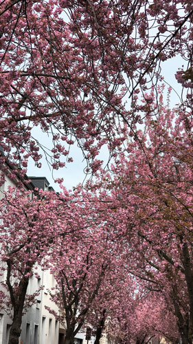 Diese verschiedenen Farb-Nuancen von Zartrosa bis Pink, wenn die Sonne durch die Blütenblätter scheint – diese andächtige Stimmung, die aufkommt, wenn man unter einem Dach von Kirschblüten schreitet.
